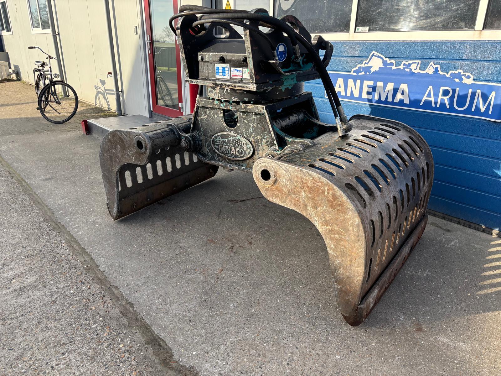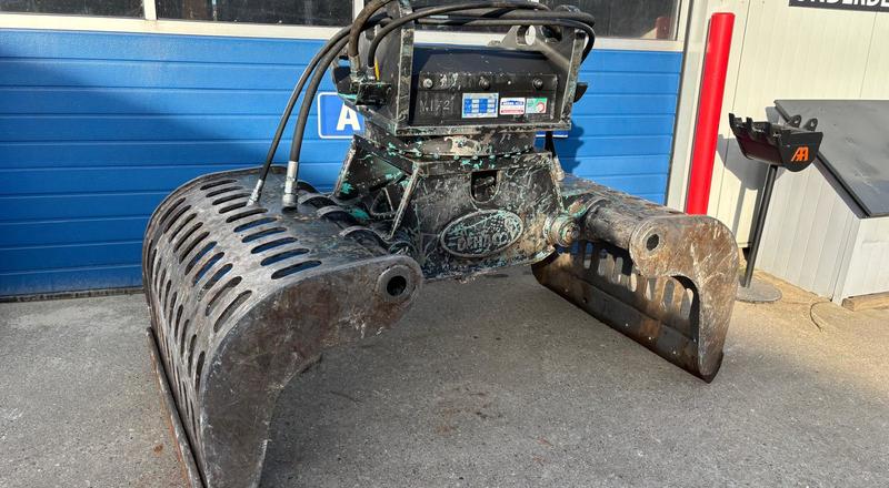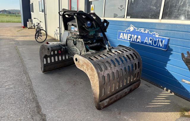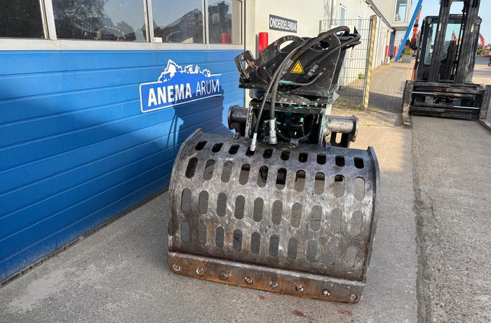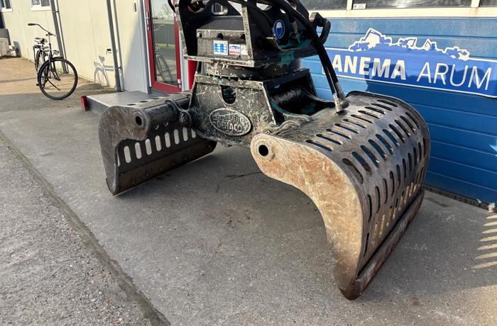 Eigen gewicht 1600kg, machineklasse 20-28ton, ophanging CW4, hydr. rotatie, schaalbreedte 120cm, spreidopening 210cm, inhoud 850ltr. Incl. wisselmessen, slangen en koppelingen.