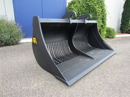 Eigen gewicht ±800kg, breedte 210cm, inhoud ±1500ltr. 1:1, met gehard hijsketting, machineklasse 20-25ton, ophanging CW40. Incl. voorzetmes. Ook te huur!