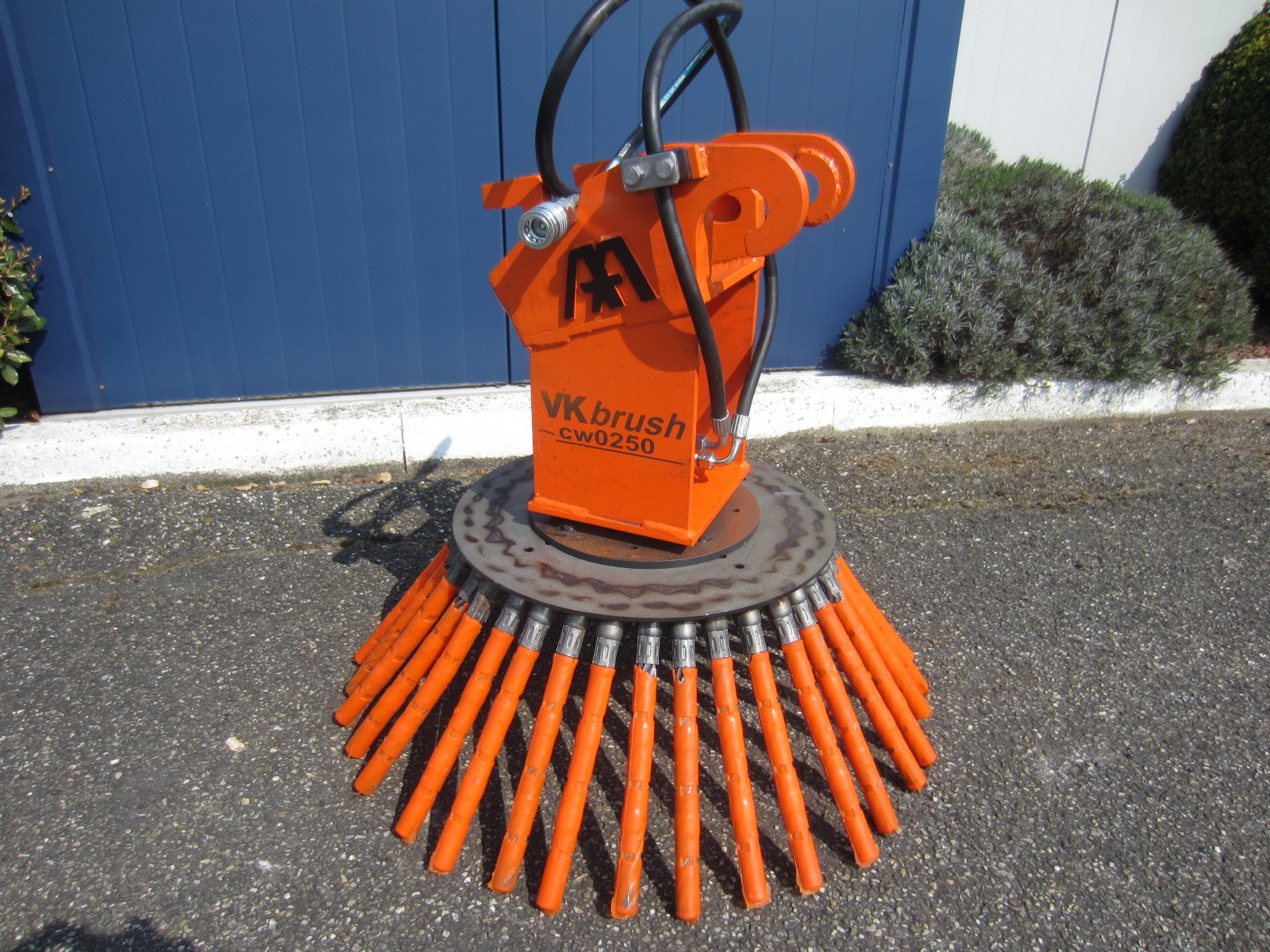Hydraulisch aangedreven onkruidborstel voor aan minigraver graafmachine, breedte (diam) 80cm, hoogte 75cm, ophanging CW05(CW00), klasse 2-4ton, hydr. motor 250cc, inclusief slangen en koppelingen.