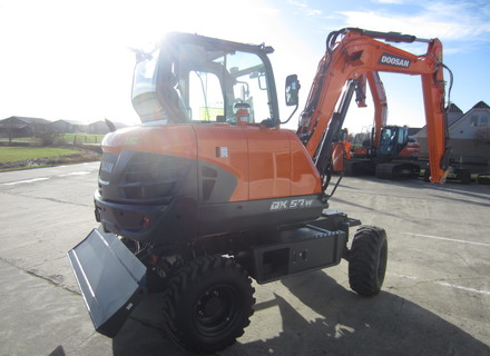 Eigen gewicht ±5800kg. Doosan D24 4-cil. dieselmotor Stage V, motorinhoud 2392cm3, vermogen 42.5kW/57.8Pk, pompopbrengst 2x60ltr., rijsnelheid 10-30km/h.