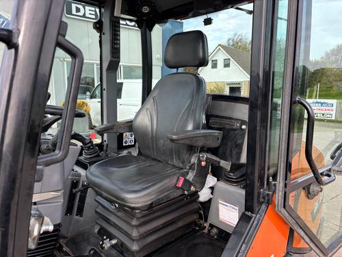 Eigen gewicht ±3750kg, Kubota dieselmotor 4-cilinder 66Pk Stage V, Z-hefframe, hydrostaat 4-wielaandrijving 100% diff. lock, rijsnelheid 0-35km/h, extra hydr. functie, hefcapaciteit ±2800kg/tipload ±1685kg, hefhoogte 329cm, brede banden, luxe cabine. Opgebouwd met hydr. snelwissel Giant, brede dichte bak 580ltr, (palletframe =optie).