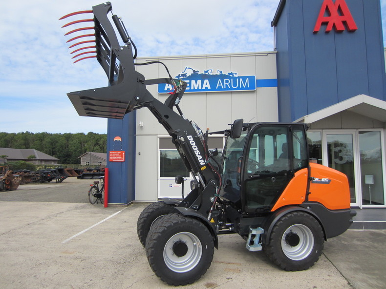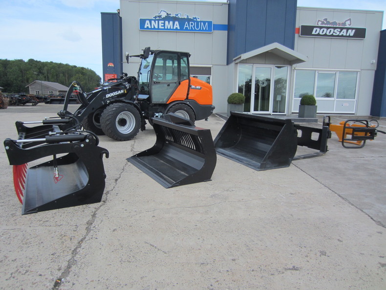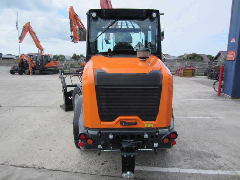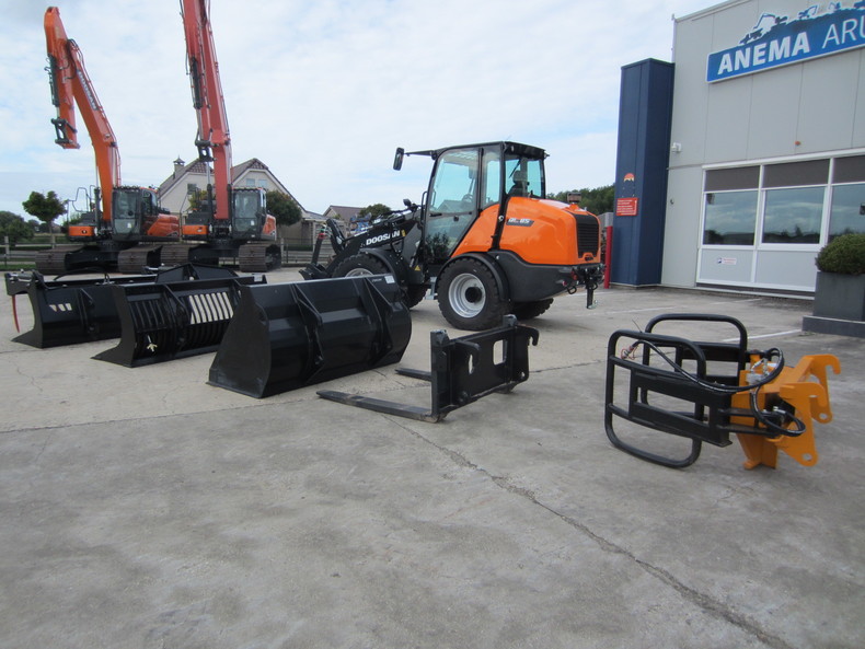 Eigen gewicht ±5100kg, Kubota dieselmotor 4-cilinder 75Pk Stage V, P-hefframe, hydrostaat 4-wielaandrijving 100% diff. lock, rijsnelheid 0-35km/h, hydr. snelwissel (Volvo L30, brede dichte bak 810ltr, extra hydr. functie, hefcapaciteit ±3100kg/tipload ±2867kg, hefhoogte 285cm, brede banden 500/45R22.5, luxe cabine. Diverse opties en uitrustingstukken mogelijk, vraag ons vrijblijvend naar een offerte.