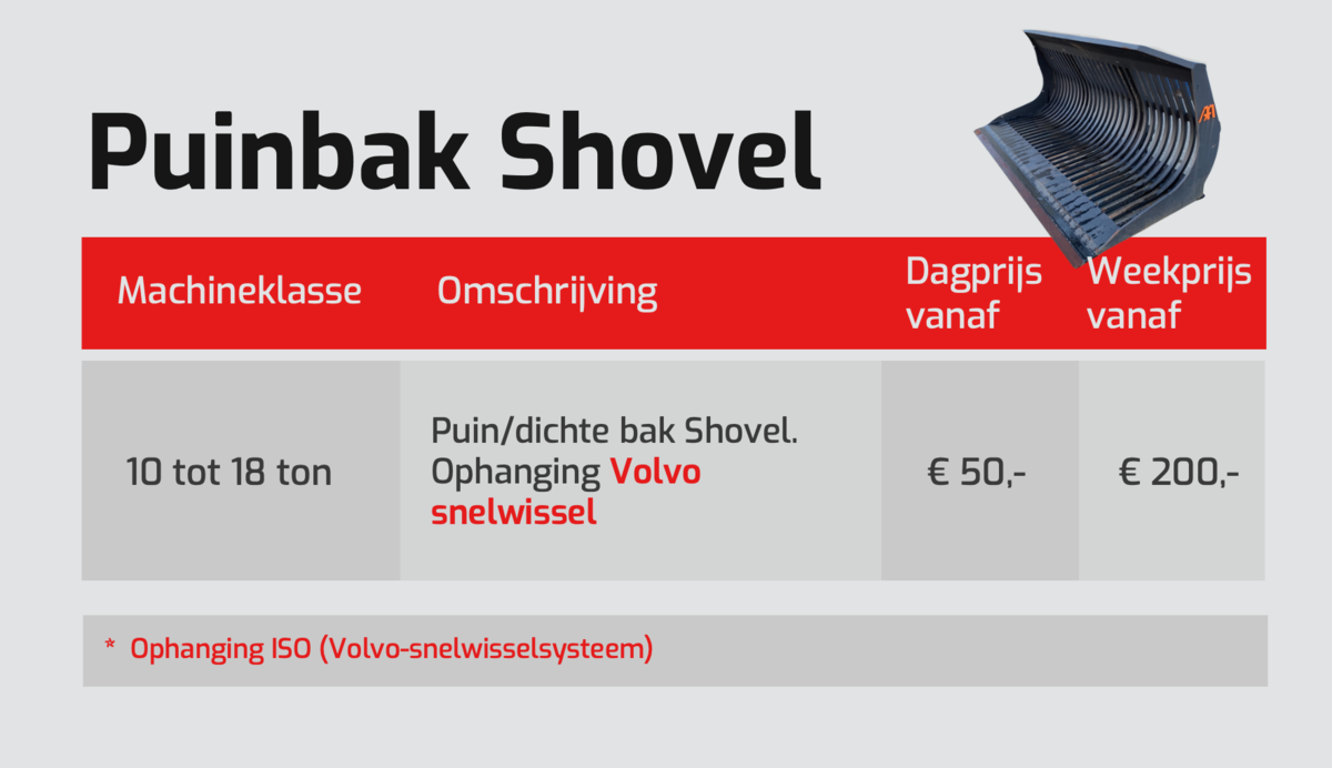 | 10 tot 18 ton | Puin/dichte bak Shovel. Ophanging Volvo snelwissel |