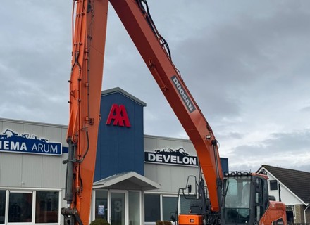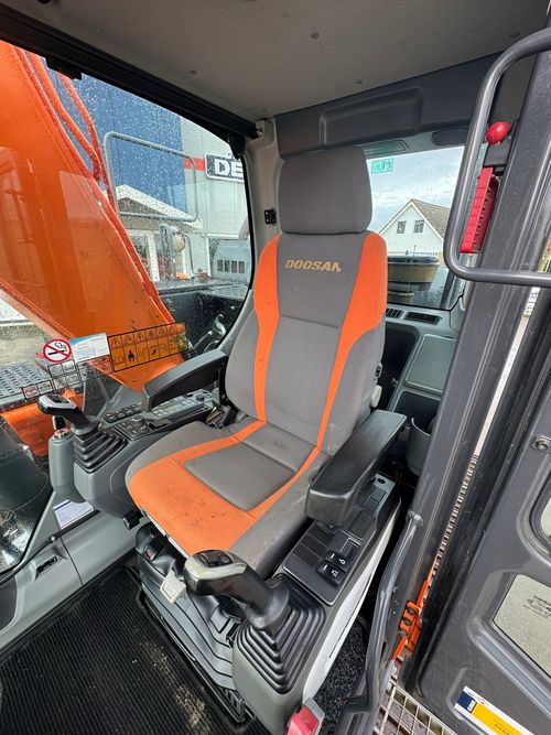 Uitvoering: Monogiek 850cm, steel 620cm, rupsplaten 100cm (met gebogen uiteinden), extra ballast ±2000kg., hydr. snelwissel CW30, AA graafbak 180cm-900ltr, slangbreukbeveiliging, kraanboekkeuring, hydr. lage druk functie, proportionele bediening, Topcon 3D-GPS voorbereiding, dieselvulpomp, extra werklampen, luxe stoel luchtgeveerd met verwarming, zij- en achtercamera, radio, zwaailamp, climate control, DoosanConnect.