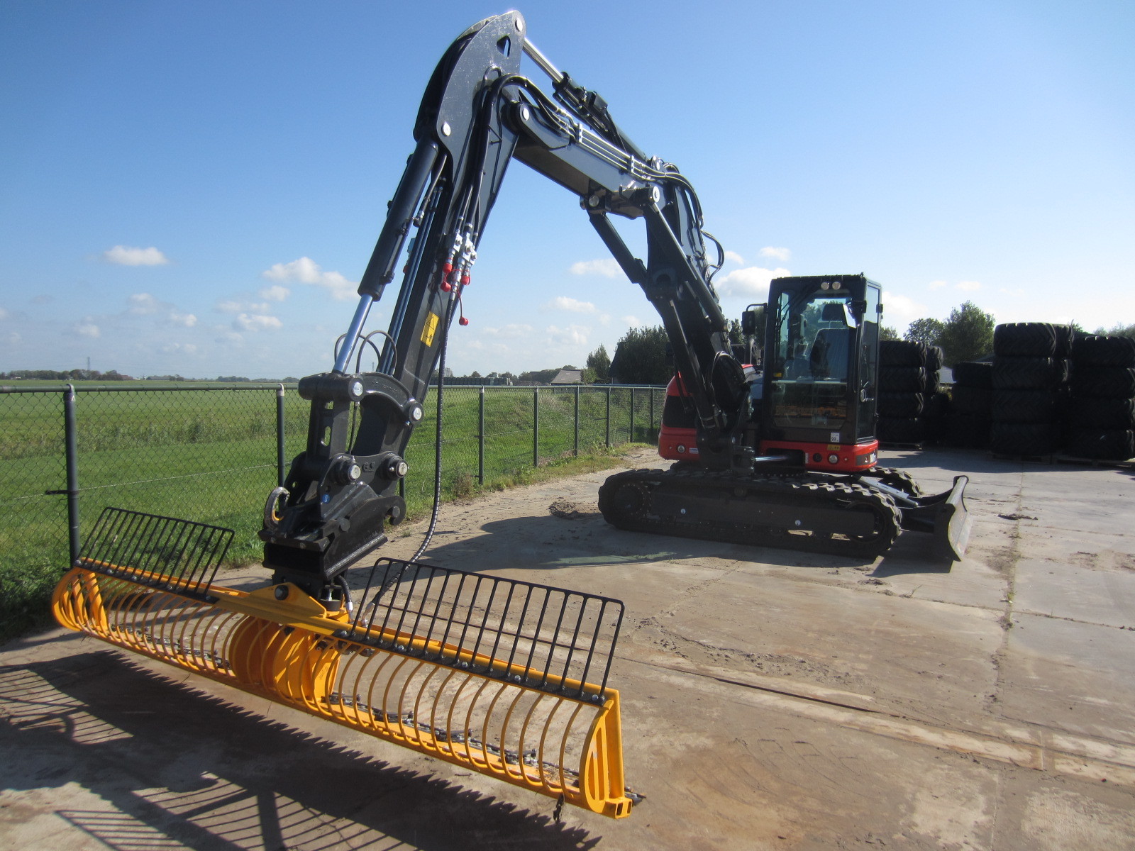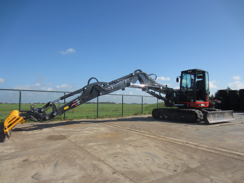 Eigen gewicht ±10000kg, hydr. snelwissel CW10, maaikorf 3mtr., bereik 8mtr.