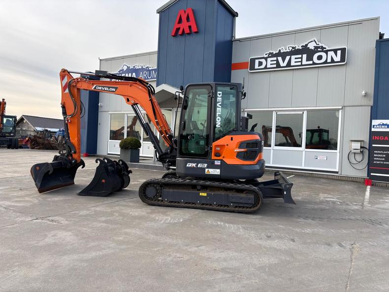 Eigen gewicht ±6218kg, Develon D24 dieselmotor 65Pk Tier/Stage V, monogiek 290cm, steel 190cm, rubbertrack 40cm, breedte machine 198cm, schuifblad incl. zweefstand, load sensing hydr. pomp max. 145l/min 275bar, hamer/rotatiefunctie proportioneel bediend, 8" smart touchscreen, LED-werklampen, zwaailamp, DAB+ radio bluetooth & handsfree, airco, DoosanConnect.