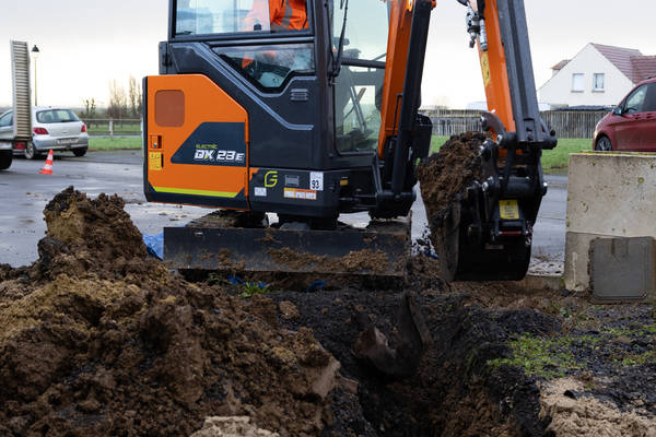 “De DX23E-7 is een krachtige aanvulling op het elektrische machineassortiment van Develon,” zegt Stéphane Dieu, Product Manager Graafmachines Europa bij Develon. “De machine biedt grote voordelen ten opzichte van de dieselvariant dankzij het lage geluidsniveau en het emissievrije werken. Compact materieel, zoals minigraafmachines, wordt namelijk vaak ingezet in stedelijke omgevingen en woonwijken, waar men in de nabijheid van andere werknemers en het publiek werkt.”