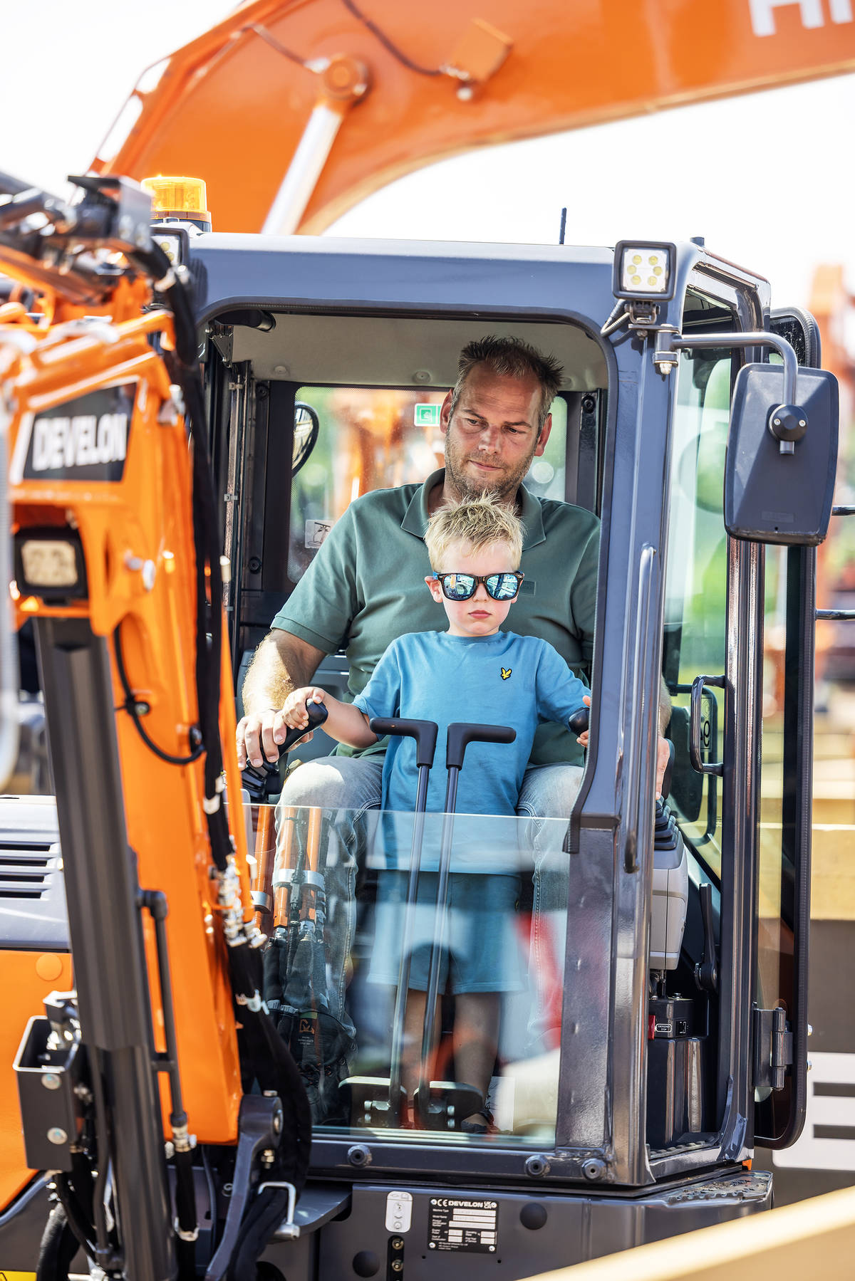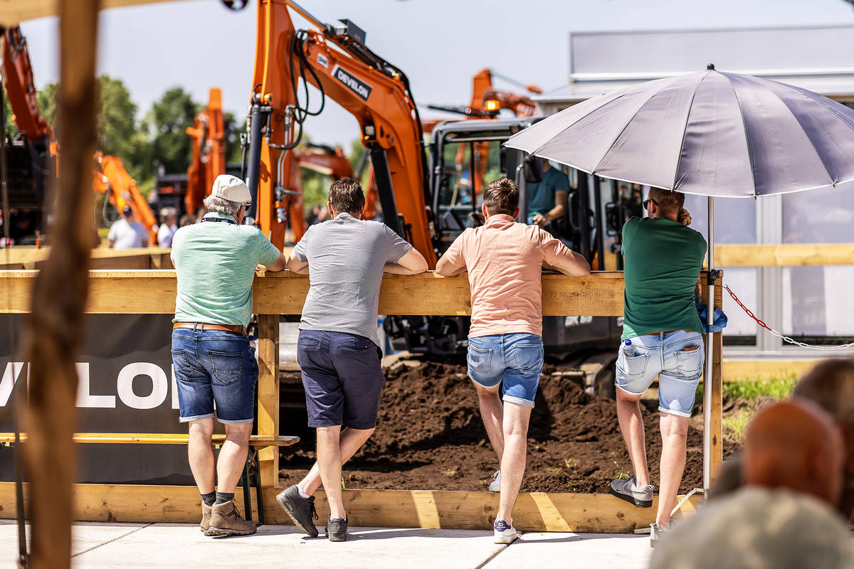 Een van de hoogtepunten was dat bezoekers zélf achter de knoppen mochten kruipen. Op ons demoterrein konden diverse Develon-machines getest worden – een unieke kans om de kracht, precisie en het comfort van onze machines zelf te ervaren.