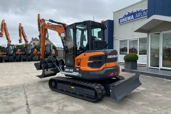 Met een eigen gewicht van circa 6.218 kg en een breedte van 198 cm is de DX63-7 wendbaar genoeg voor stedelijke omgevingen, maar ook krachtig genoeg voor zwaardere graafwerkzaamheden. De machine wordt aangedreven door een Develon D24 dieselmotor (65 pk) die voldoet aan de Stage V-emissienorm.
