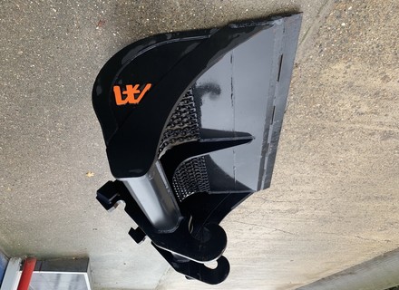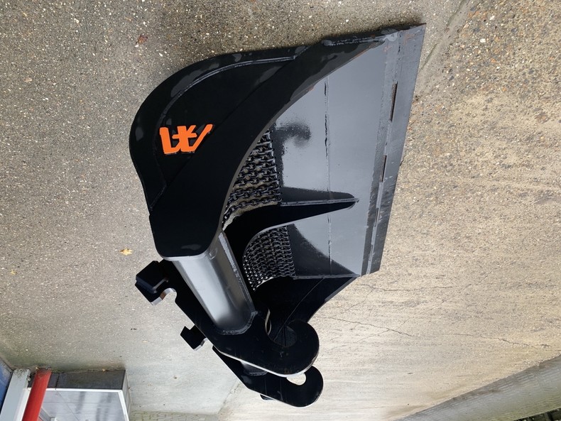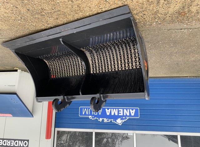 Eigen gewicht ±470kg, breedte 180cm, inhoud ±900ltr. 1:1, met gehard hijsketting, machineklasse 12-16ton, voorzetmes, ophanging CW30. Ook te huur!