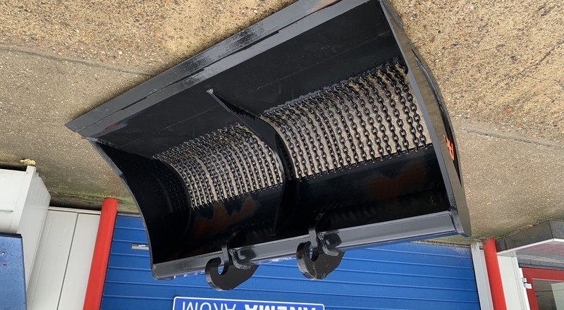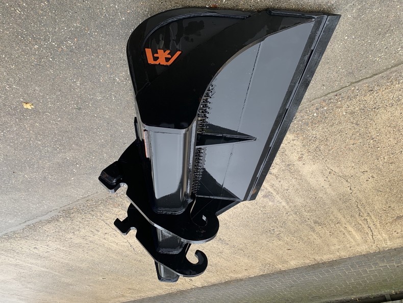 Eigen gewicht ±650kg, breedte 200cm, inhoud ±1250ltr. 1:1, met gehard hijsketting, machineklasse 16-21ton, ophanging CW30. Incl. voorzetmes. Ook te huur!