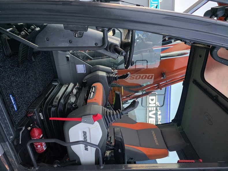 Uitvoering met hydr. verstelgiek, steel 250cm, draaikantelstuk SMP ST15 met hydr. snelwissel CW30 incl. lasthaak, AA brede graafbak 180cm ±850ltr., slangbreukbeveiliging, kraanboekkeuring, hamer/rotatiefunctie, proportionele bediening, schuifblad met demontabele trekhaak en 24V trailerstekker, opbergkist op onderwagen, brede banden Nokian ground kare 650/45-22.5, kunststof spatborden, treeplank, dieselvulpomp, extra werklampen, luxe stoel lucht geveerd met verwarming, zij- en achtercamera, radio, zwaailamp, climate control,