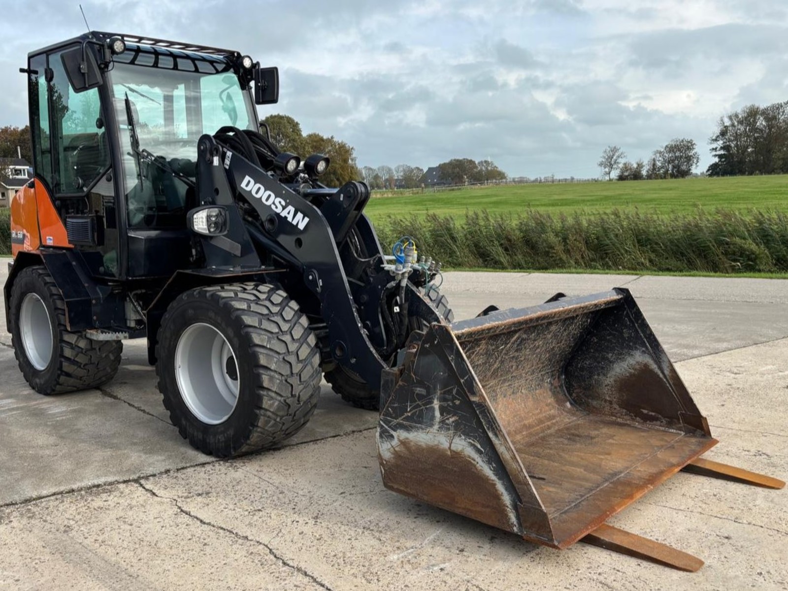 Eigen gewicht ±3750kg, Kubota dieselmotor 4-cilinder 66Pk Stage V, Z-hefframe, hydrostaat 4-wielaandrijving 100% diff. lock, rijsnelheid 0-35km/h, extra hydr. functie, hefcapaciteit ±2800kg/tipload ±1685kg, hefhoogte 329cm, brede banden, luxe cabine. Opgebouwd met hydr. snelwissel Giant, brede dichte bak 580ltr, (palletframe =optie).