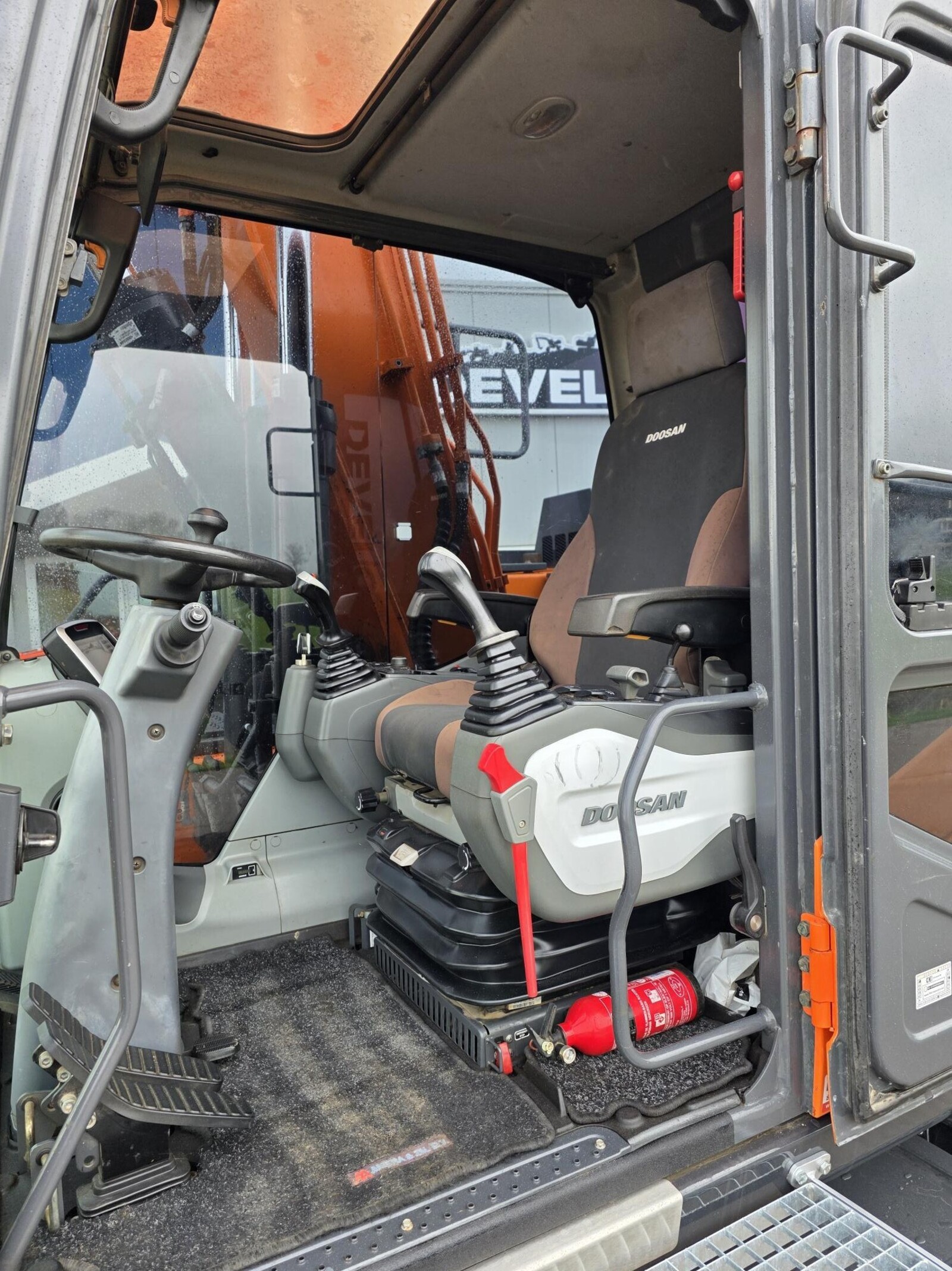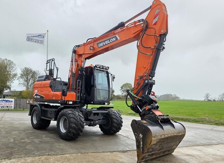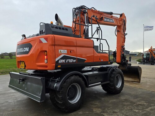 Eigen gewicht ±18000kg, Doosan 6-cilinder dieselmotor Tier IV, draaikantelstuk Steelwrist met hydr. snelwissel CW30, brede slotenbak 180cm-900ltr, hamer/sorteerfunctie, proportionele bediening, extra werkverlichting, zwaailicht, accumulator, afneembare trekhaak, spatborden, banden Alliance 650 (Nieuw), 2st. gereedschapskisten. cabine met verstelbare stoel met verwarming, climate control, camera in ballast, ramen getint. Nette machine in goedwerkende staat!