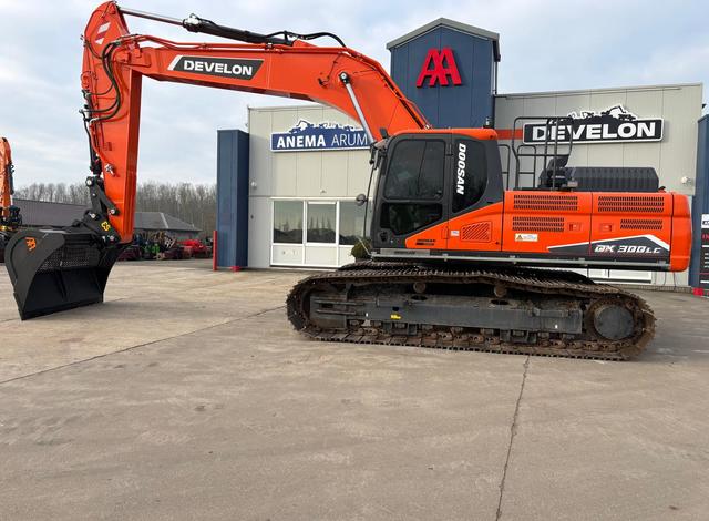 Eigen gewicht ±31000kg, Develon DL08 6-cilinder dieselmotor Stage V, monogiek 625cm, steel 310cm, brede rupsplaten 90cm, hamer/rotatiefunctie, LED-werklampen, radio met bluetooth, 8" display, AVM 360gr. camera, climate control, DFM. Opgebouwd met; hydr. snelwissel CW40, AA brede graafbak 220cm-2400ltr., treeplank langs gehele zijde L&R, getinte ramen. Vele opties mogelijk! Ook te huur!