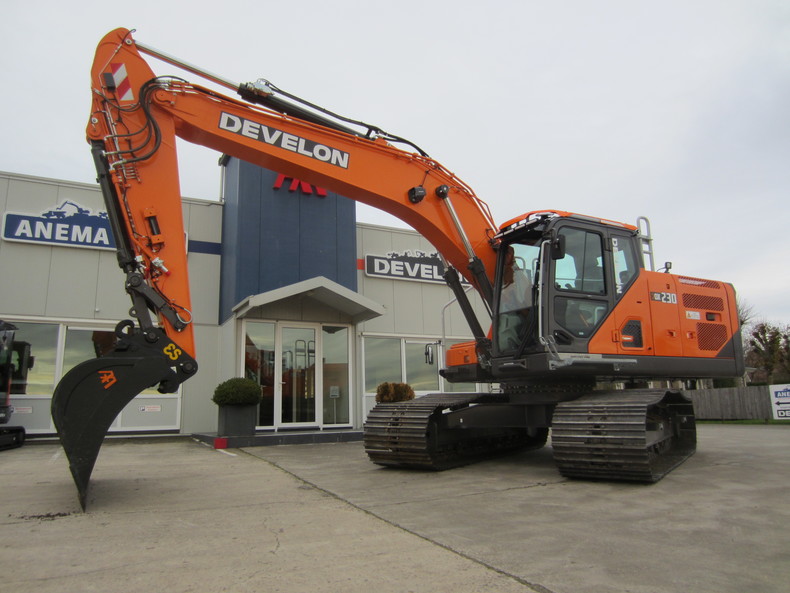 Uitvoering: Eigen gewicht ±23000kg, monogiek 570cm, steel 290cm, hamer/rotatiefunctie, snelwisselfunctie, brede rupsplaten 90cm, LED-werklampen, Develon DX05V 4-cil. commonrail dieselmotor Tier 4F/Stage V, cabine met instelbare & luchtgeveerde stoel incl. verwarming én koeling, climate control, DFM. Incl. opties af fabriek; smart key, Full smart package (2D Machine Guidance / Smart control /Virtual Walls + Weighing System +SAVM + HDS + Advanced lift assist) en opgebouwd met hydr. snelwissel CW40 en AA brede graafbak 210-1450ltr.