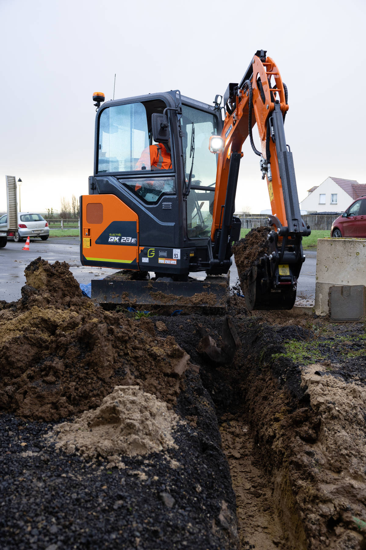 “De DX23E-7 is een krachtige aanvulling op het elektrische machineassortiment van Develon,” zegt Stéphane Dieu, Product Manager Graafmachines Europa bij Develon. “De machine biedt grote voordelen ten opzichte van de dieselvariant dankzij het lage geluidsniveau en het emissievrije werken. Compact materieel, zoals minigraafmachines, wordt namelijk vaak ingezet in stedelijke omgevingen en woonwijken, waar men in de nabijheid van andere werknemers en het publiek werkt.”