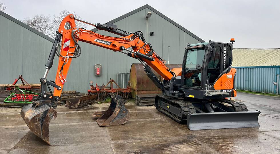 Met deze Develon DX85R-7 beschikt H. van Wieringen & Zn. Loonbedrijf over een moderne, wendbare en veelzijdige rupsgraafmachine die perfect past bij de dagelijkse werkzaamheden.