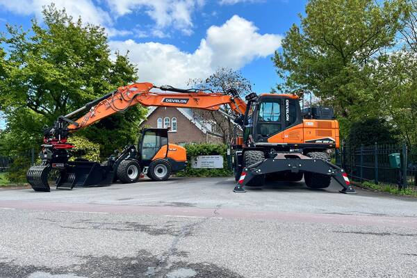 De DX160WE is een volledig emissie-loze mobiele graafmachine die kracht en mobiliteit perfect combineert. Dankzij de grote accu’s met 380kW aan boord kan Van der Lee hele dagen werken.
